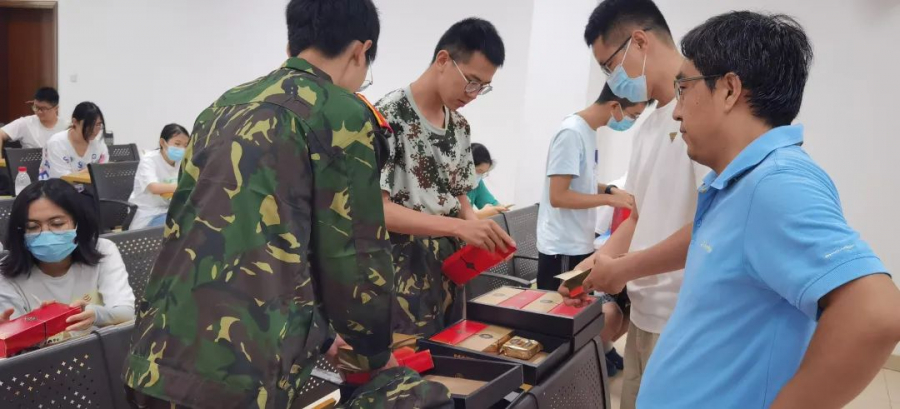 最后,牛军凯院长代表学院教师为2022级本科新同学们带来中秋月饼,表达了学院对同学们开启大学生活后第一个中秋的节日慰问。全班同学在分享美味月饼中愉快地结束大学第一课。