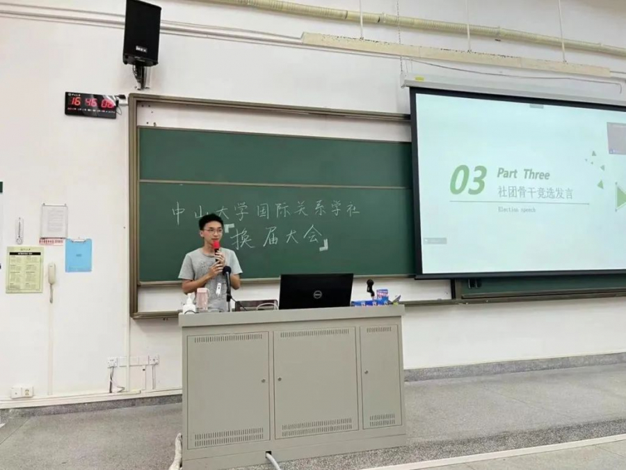 2022年9月13日,国际关系学社换届大会在珠海校区教学楼E201顺利召开,学院党委副书记余展涛、社团指导老师姜鹏副教授、张天华老师和全体学社成员参与了本次换届大会。