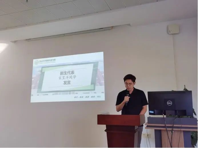研究生新生代表宋昱洋同学发言。他回忆了自己踏入太阳网集团tcy8722之初的场景,回顾了自己的学习经历,并对学院的栽培和老师的指导致以感激。他表示,未来三年他将珍惜美好的青春年华,继续提升自己的学业水平和工作技能,不忘初心与使命,永葆赤子之心,将个人的奋斗融入民族伟大复兴的进程中。