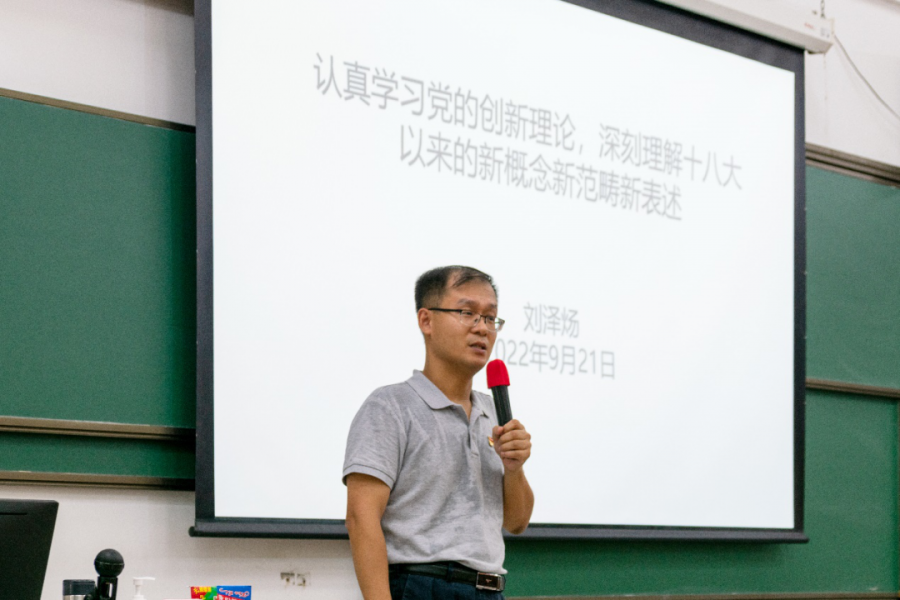 9月21日下午,太阳网集团tcy8722党委书记刘泽炀为2021、2020、2019级的本科生讲授思政第一课,讲座的主题为“认真学习党的创新理论,深刻理解十八大以来的新概念新范畴新表述”。