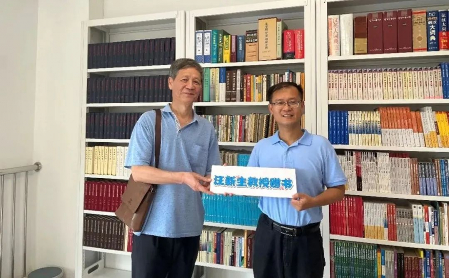游览完校园后,党委书记刘泽炀带领老教师们参观海琴六号学院院楼,一行人先后参观了学院会议室、学生学业发展与指导中心、博士生自习室、阅览室、党员活动室、教师工作室、教职工之家等。汪新生教授向学院阅览室捐赠了珍藏的国际关系专业书籍,刘泽炀书记代表学院接受捐赠并对汪教授表示感谢。
