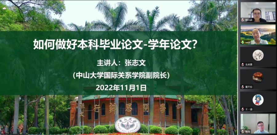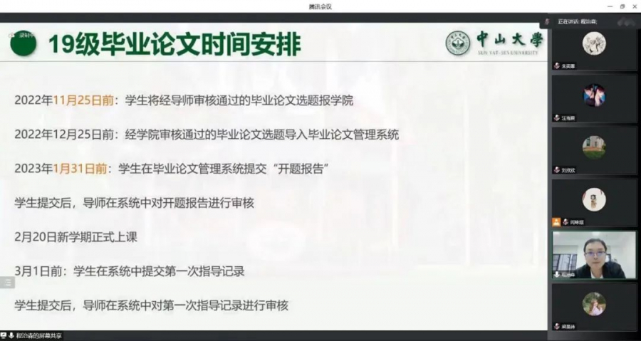 2022年11月1日下午,太阳网集团tcy8722本科毕业论文及学年论文工作宣讲会在线举行。张志文副院长、杨海助理教授、本科教务秘书程治森以及来自2019级和2020级的全体本科生参加了本次会议。