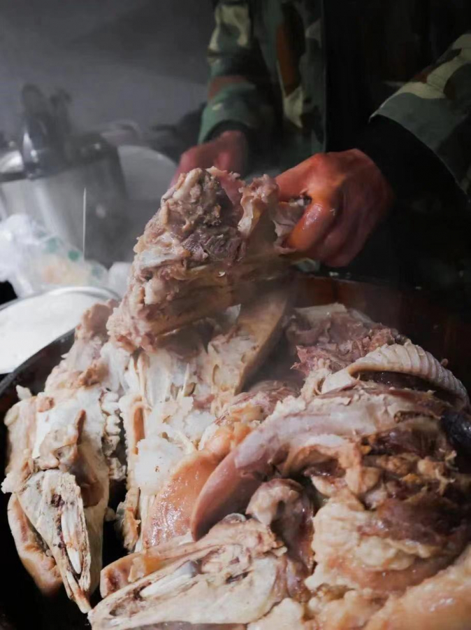 《扒猪头肉》:这是一张有味道的照片!木桶盛的是一整个猪头,先用作祭祖,而后蒸熟了直接上手扯开,喊上家中小辈每人分一小块冒着热气的新鲜猪肉,蘸着酱油或细盐大嚼吞下。大伯的一句“扒猪头肉嘞”喊了二十多年,他一喊,就过年了。