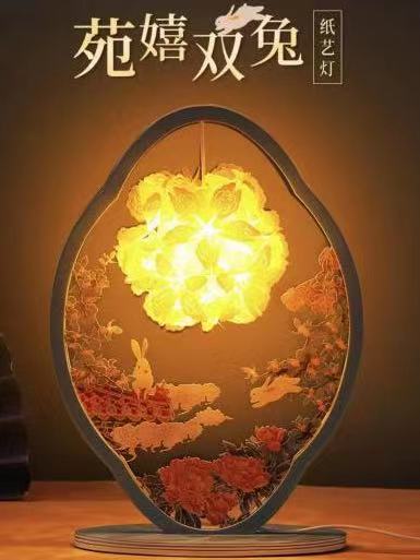 奖品为苑嬉双兔纸艺灯1件