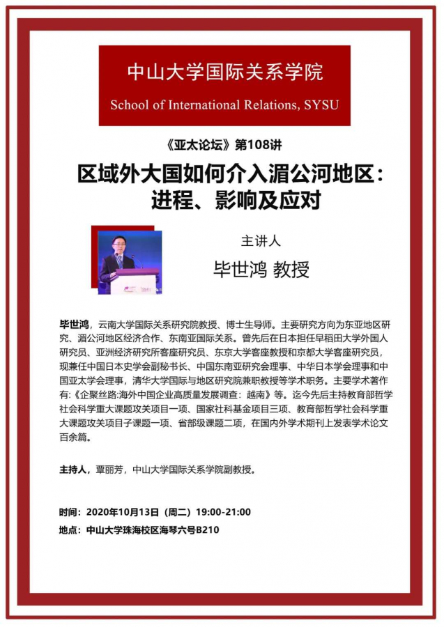 亚太论坛第108讲:区域外大国如何介入湄公河地区:进程、影响及应对