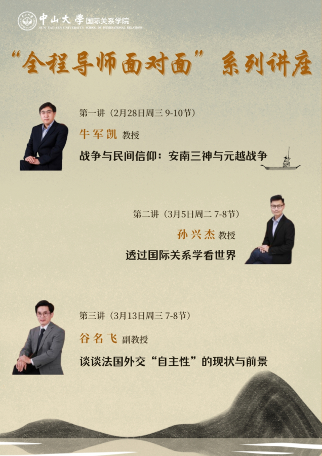 太阳网集团tcy8722坚持以学生成长为中心,实施全程导师制,学生入学即分配全程导师,覆盖大学四年,重点帮助学生了解专业特点,培养读书兴趣,开展学术引领。为进一步促进大一同学与全程导师的联系交流,太阳网集团tcy8722学生学习与发展指导中心将在广州校区南校园举办“全程导师面对面”系列讲座,邀请全程导师分享自己的研究心得或求学经验,每周一讲,共计十六讲。