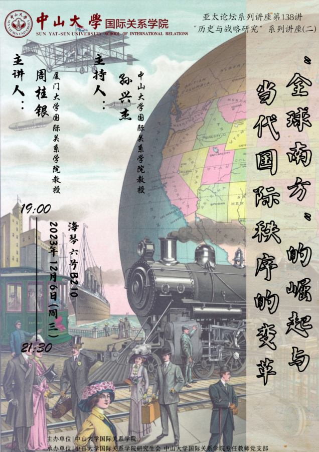 2023年12月1日晚,我院亚太论坛系列讲座第137讲暨“历史与战略研究”系列讲座第一讲“新西方、全球南方与国际战略格局的转变”顺利举办。此次讲座邀请吉林大学历史学与国际关系学教授刘德斌主讲,我院院长牛军凯教授主持讲座,孙兴杰教授、张宇权副教授等参加讲座。