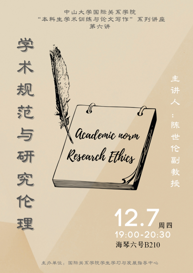 为进一步推动本科生科研能力提升,支持“科研选题与学术能力综述训练”和“学年论文”课程的更好开展,我院本学期将举办“本科生学术训练与论文写作”系列讲座,邀请学院教师围绕论文选题、文献综述、研究设计、学术规范等主题进行经验分享。