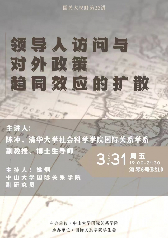 既有研究官员对外政策趋同原因的解释,主要集中在双边互动关系和国内政治两个层次,然而对于来自邻国的重大事件的间接影响却有所忽略。本讲座将聚焦于国家领导人的外交出访活动如何影响出访国及其邻国的对外政策改变。本研究基于高层领导人对外出访活动的原始数据以及一系列的空间计量模型,对上述问题进行实证检验。研究发现,领导人对外出访活动的外交政策趋同效应具有显著的空间扩散特征,能够对出访国的邻国产生积极的对外政策影响。