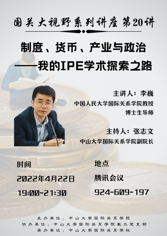 讲座预告 | 制度、货币、产业与政治——我的IPE学术探索之路